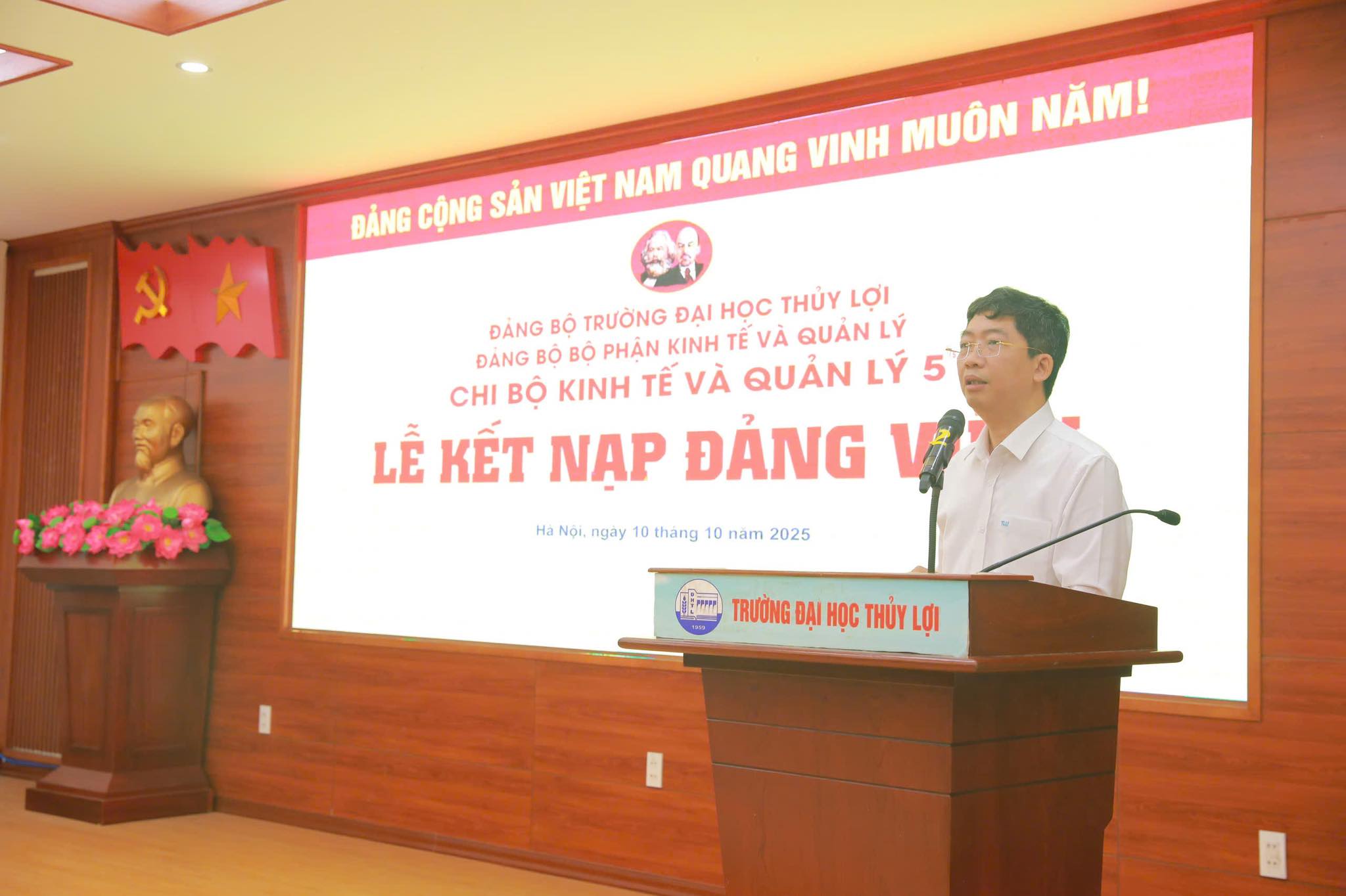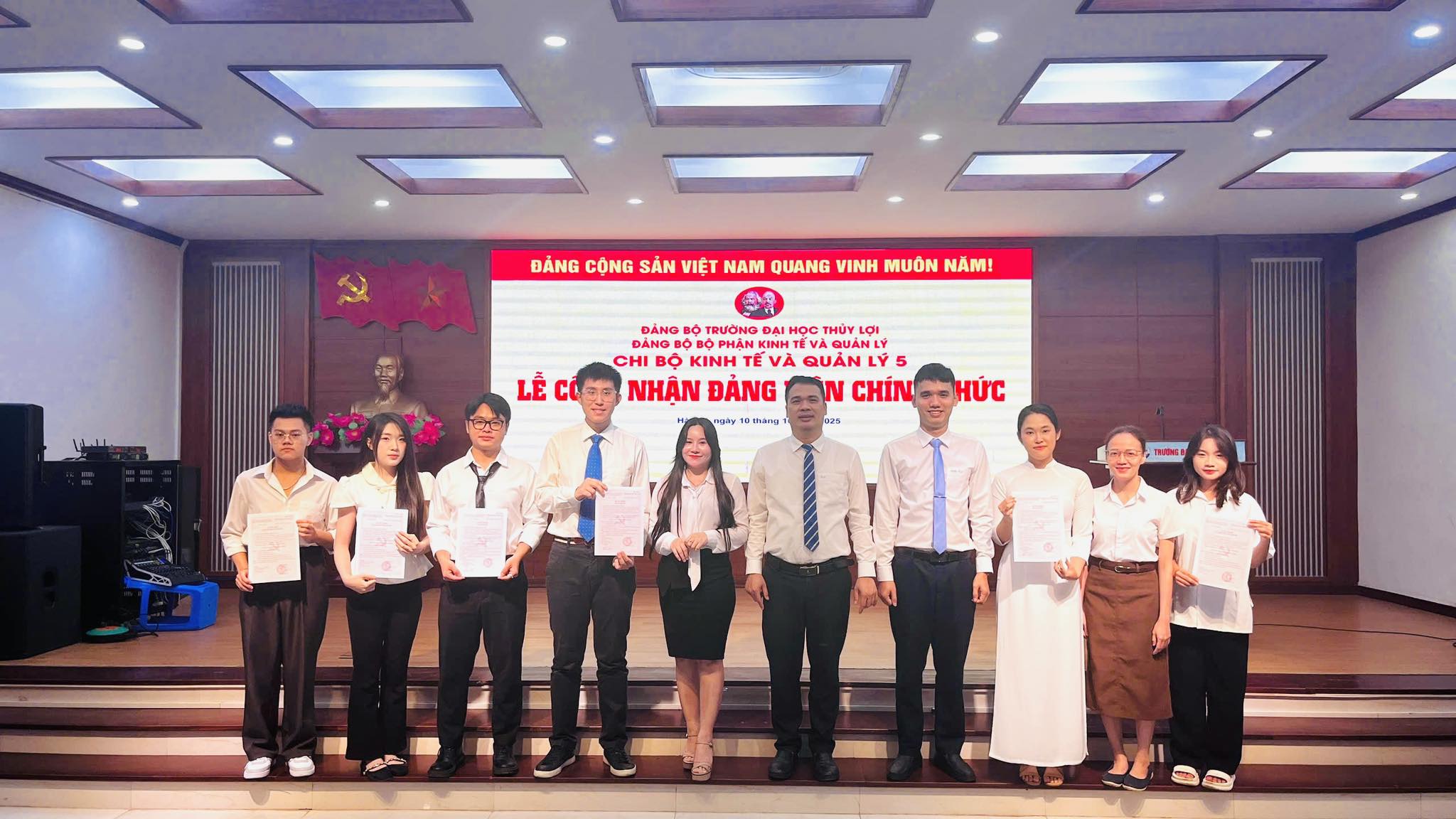 Chiều ngày 10/10/2025, tại Hội trường T35, Chi bộ Kinh tế và Quản lý 5 đã long trọng tổ chức Lễ kết nạp Đảng viên mới cho 03 quần chúng ưu tú. Buổi lễ là dấu mốc quan trọng trong công tác xây dựng, phát triển Đảng của Chi bộ, đồng thời ghi nhận sự nỗ lực, phấn đấu bền bỉ của các quần chúng trong suốt thời gian rèn luyện.