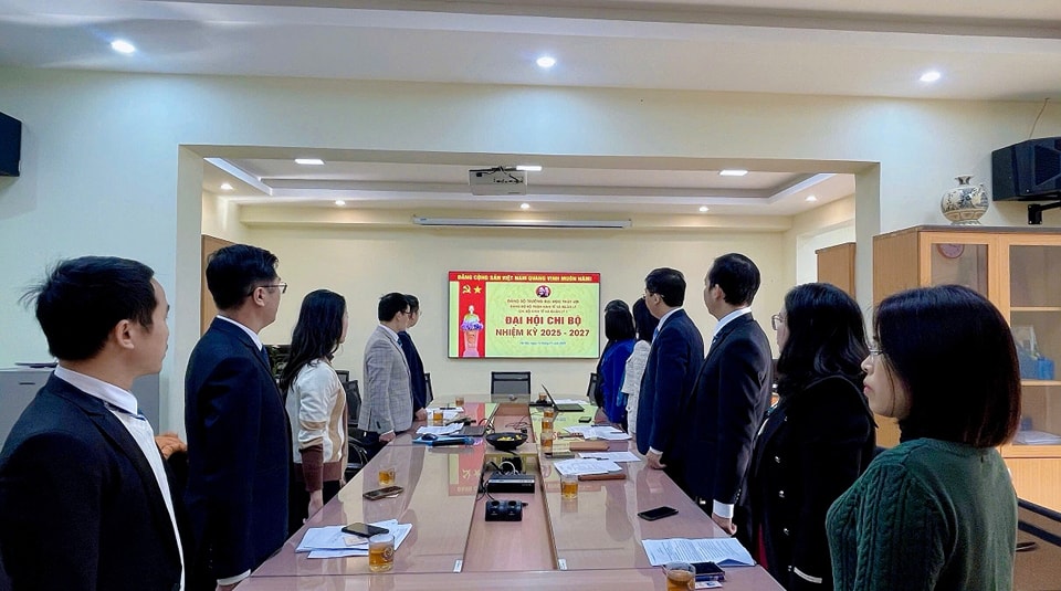 Chi bộ Kinh tế và Quản lý 1 thực hiện nghi lễ chào cờ.