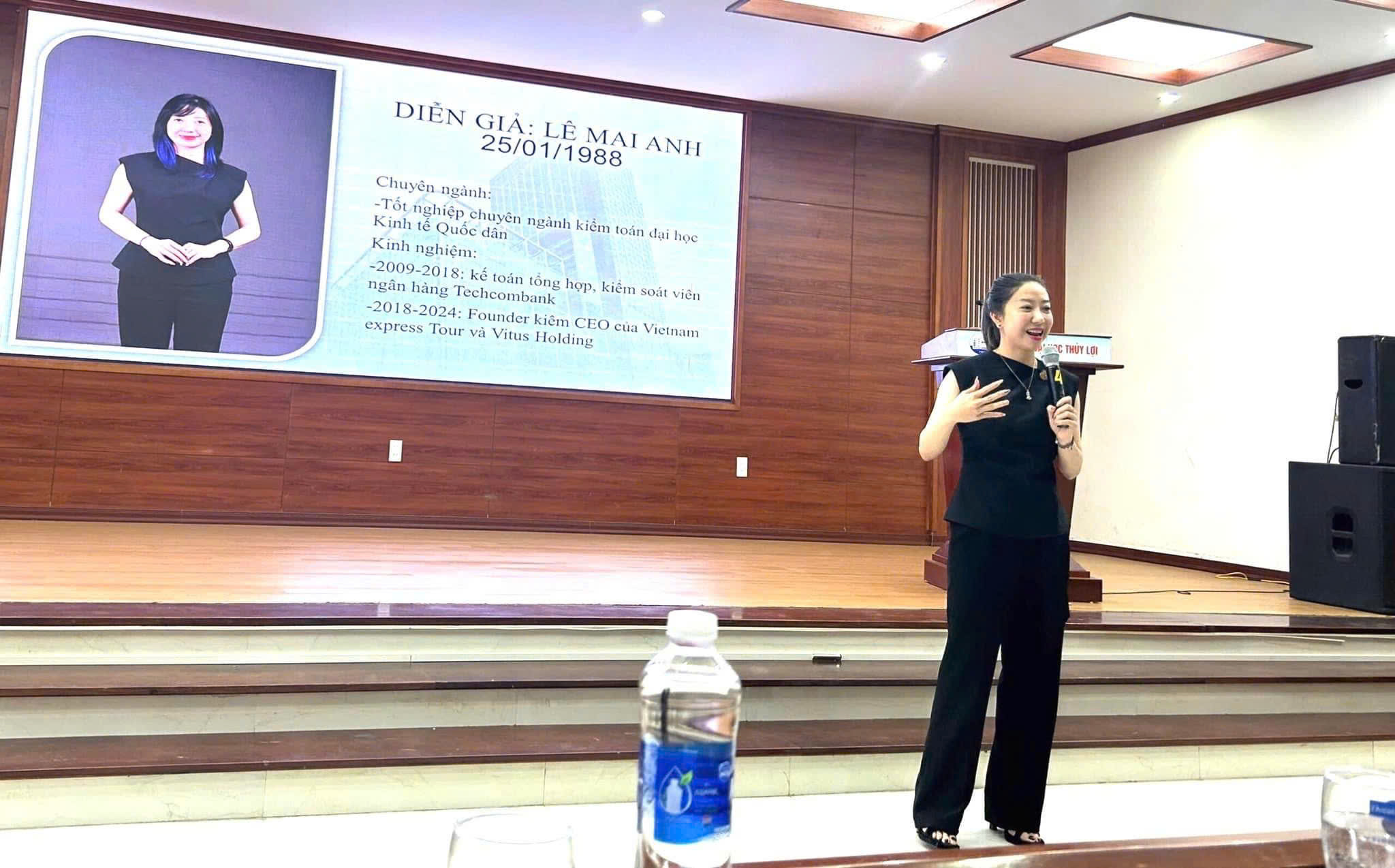 Buổi gặp mặt rất vinh hạnh có sự góp mặt hai khách mời là :Anh Lê Đình Anh – Giám đốc tài chính tại Goldsun Media Group; Chị Lê Mai Anh - Founder kiêm CEO của Vietnam Express Tour và Vitus Holding. Sự hiện diện của anh chị đã mang đến những chia sẻ quý báu cho các bạn sinh viên. Anh chị đã chia sẻ về hành trình nghề nghiệp của mình, từ cơ duyên đến với về Kế toán – Kiểm toán, những thử thách ban đầu cho đến các cơ hội phát triển. Những câu chuyện này không chỉ giúp sinh viên hiểu rõ hơn về ngành mà còn truyền cảm hứng định hướng rõ ràng hơn cho sự nghiệp tương lai