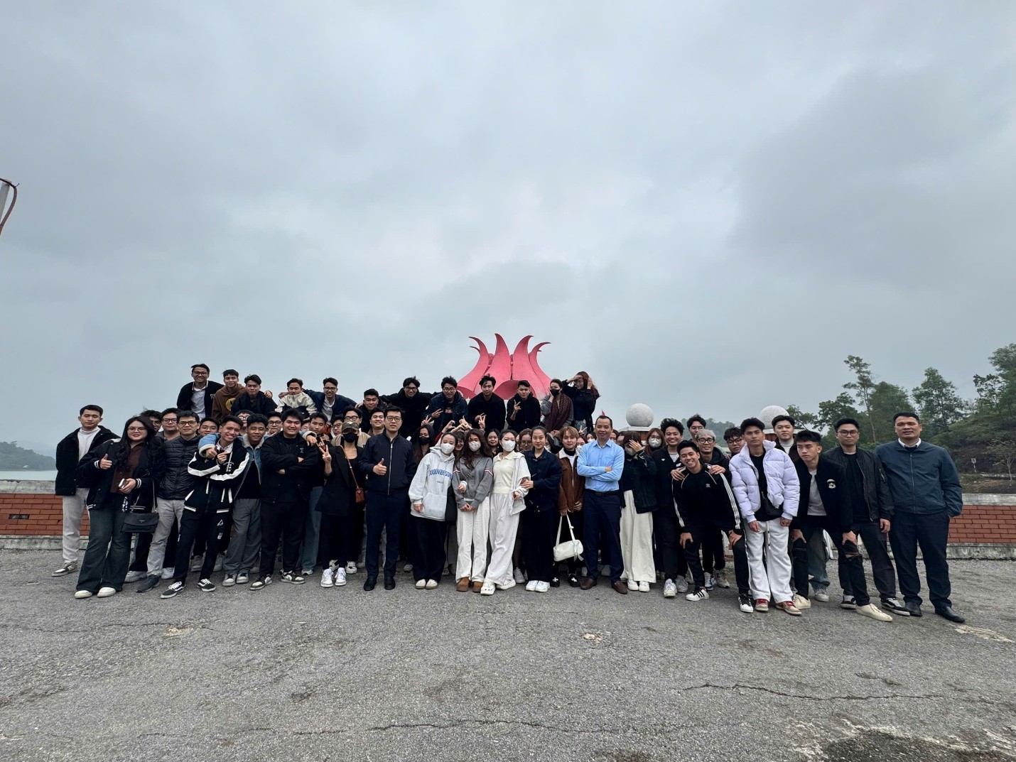 Sinh viên ngành Kinh tế xây dựng chụp ảnh tại hồ Núi Cốc |