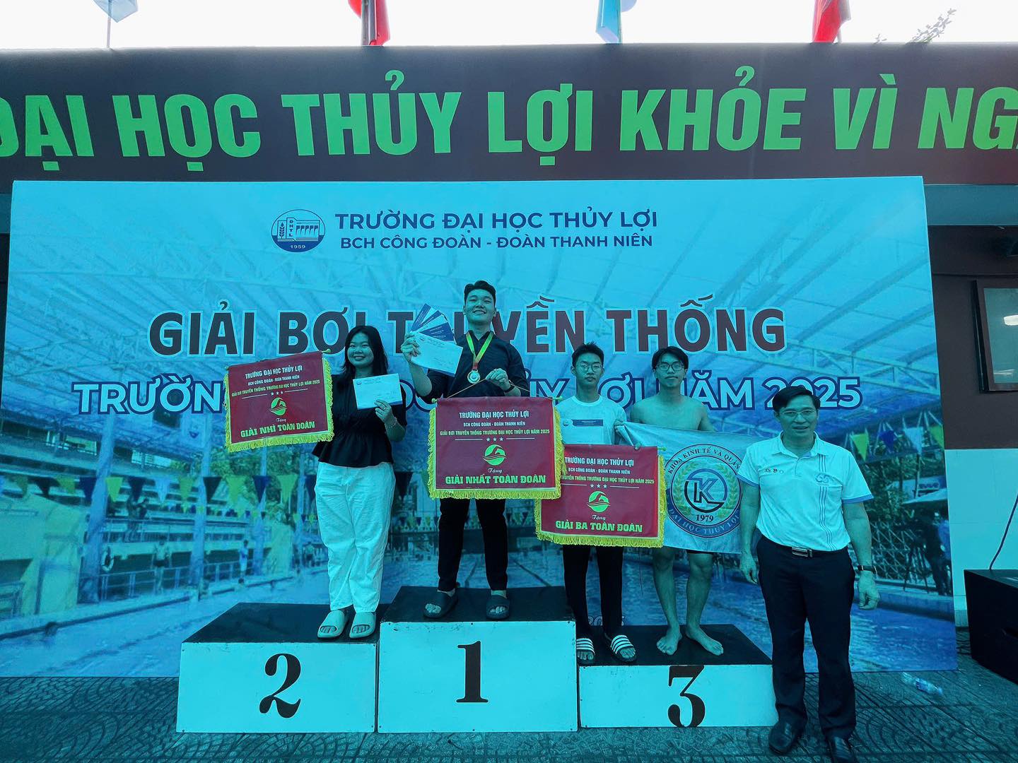 Hà Nội – 2025 – Giải bơi Truyền thống Trường Đại học Thủy lợi năm 2025 đã chính thức khép lại sau nhiều ngày thi đấu sôi động. Năm nay, Khoa Kinh tế & Quản lý (Khoa K) tiếp tục khẳng định vị thế của mình khi có màn trình diễn ấn tượng và mang về loạt thành tích nổi bật.