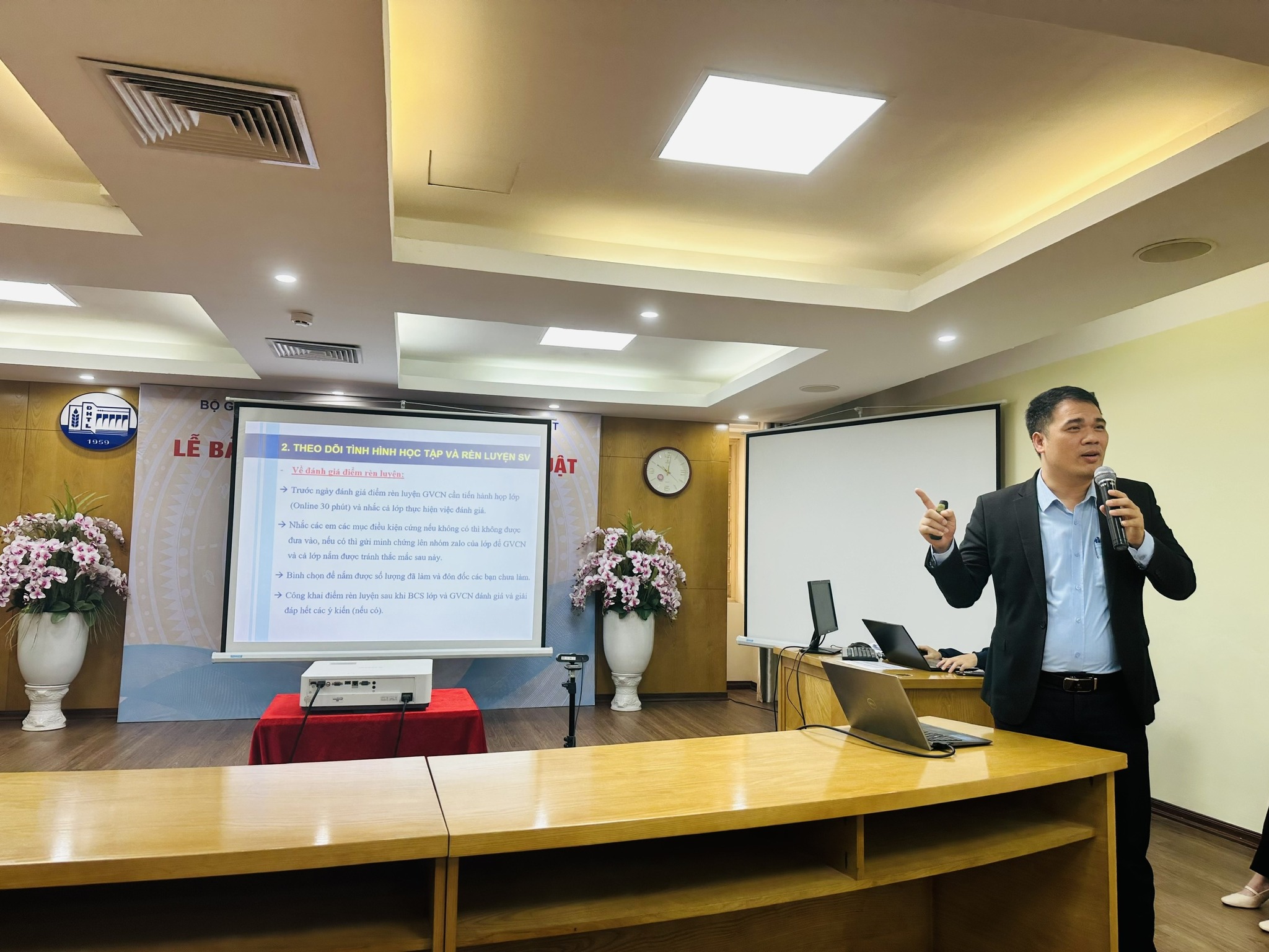 Các thầy cô và sinh viên đã trao đổi về những khó khăn thực tế và đề xuất giải pháp thiết thực. PGS.TS Lê Văn Chính tổng kết hội nghị, khẳng định tầm quan trọng của CVHT trong công tác quản lý sinh viên và đưa ra định hướng trong thời gian tới.