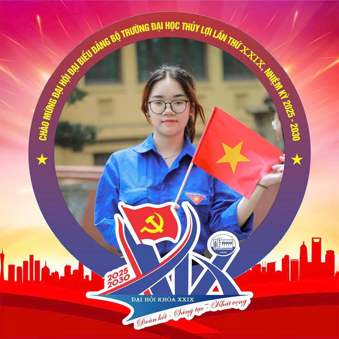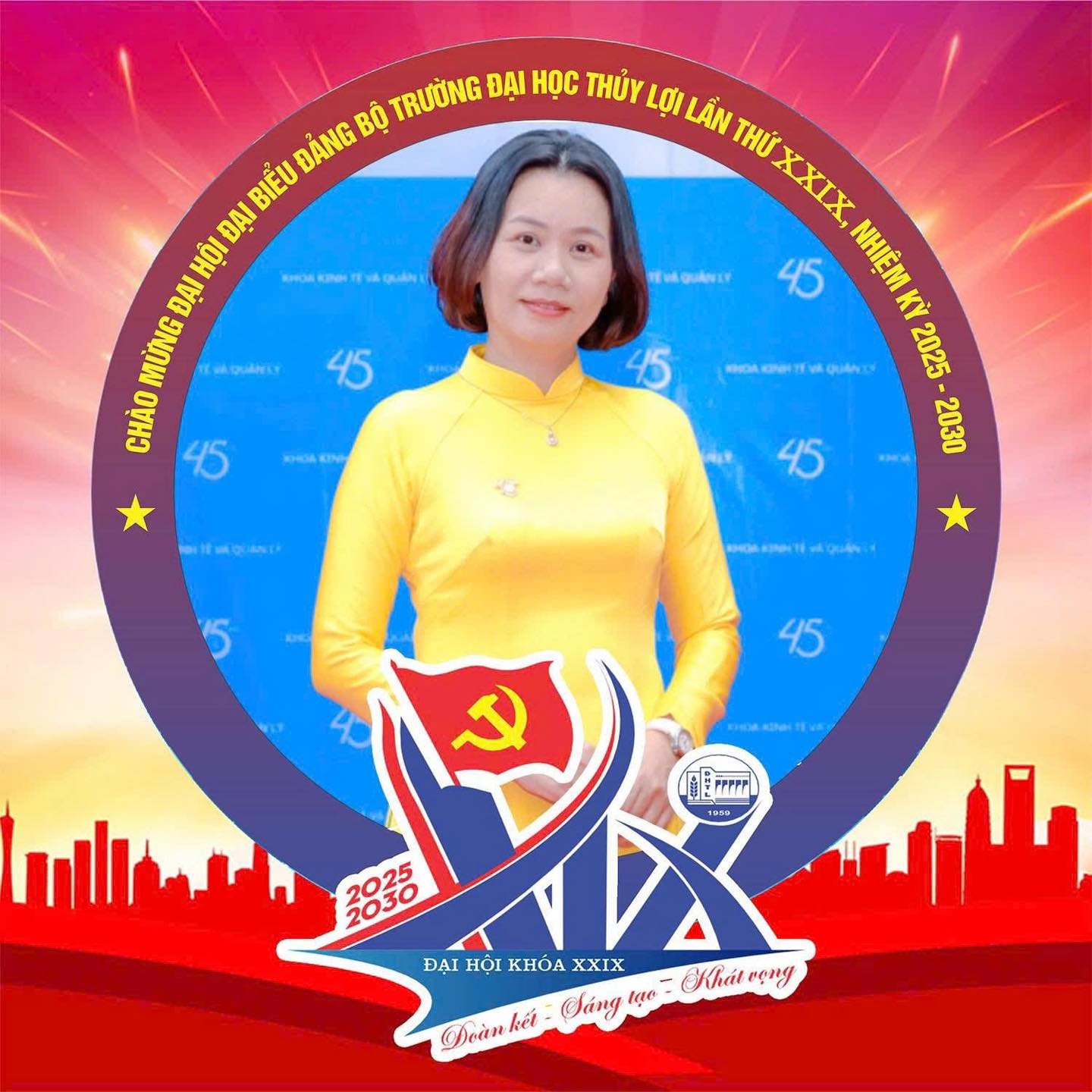 Đoàn kết – Sáng tạo – Khát vọng. Cùng với việc thay đổi ảnh đại diện, thầy trò Khoa Kinh tế và Quản lý thể hiện tinh thần đoàn kết và ủng hộ mạnh mẽ Đại hội Đại biểu Đảng bộ Trường Đại học Thủy lợi lần thứ XXIX, nhiệm kỳ 2025 – 2030. Mỗi khung hình đỏ rực rỡ không chỉ là biểu tượng của sự đồng hành mà còn khẳng định cam kết của Khoa trong việc vươn tới những thành công mới cùng Nhà trường xây dựng một tương lai phát triển thịnh vượng.