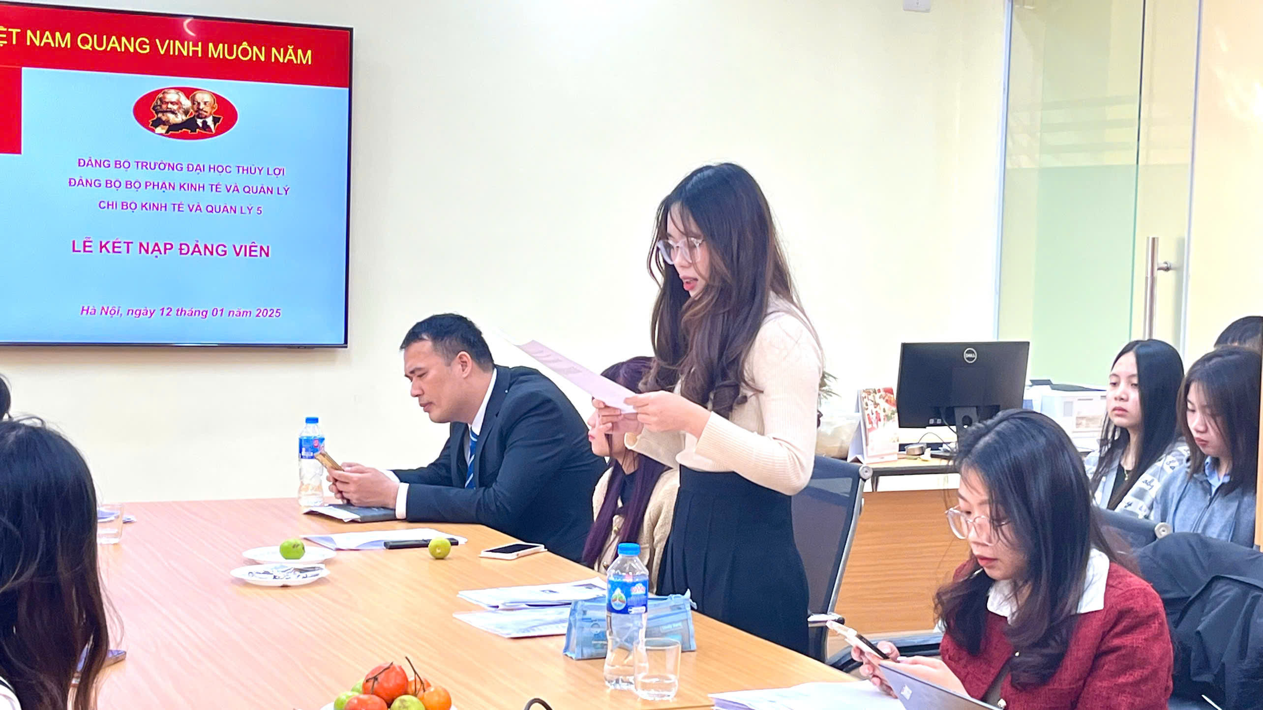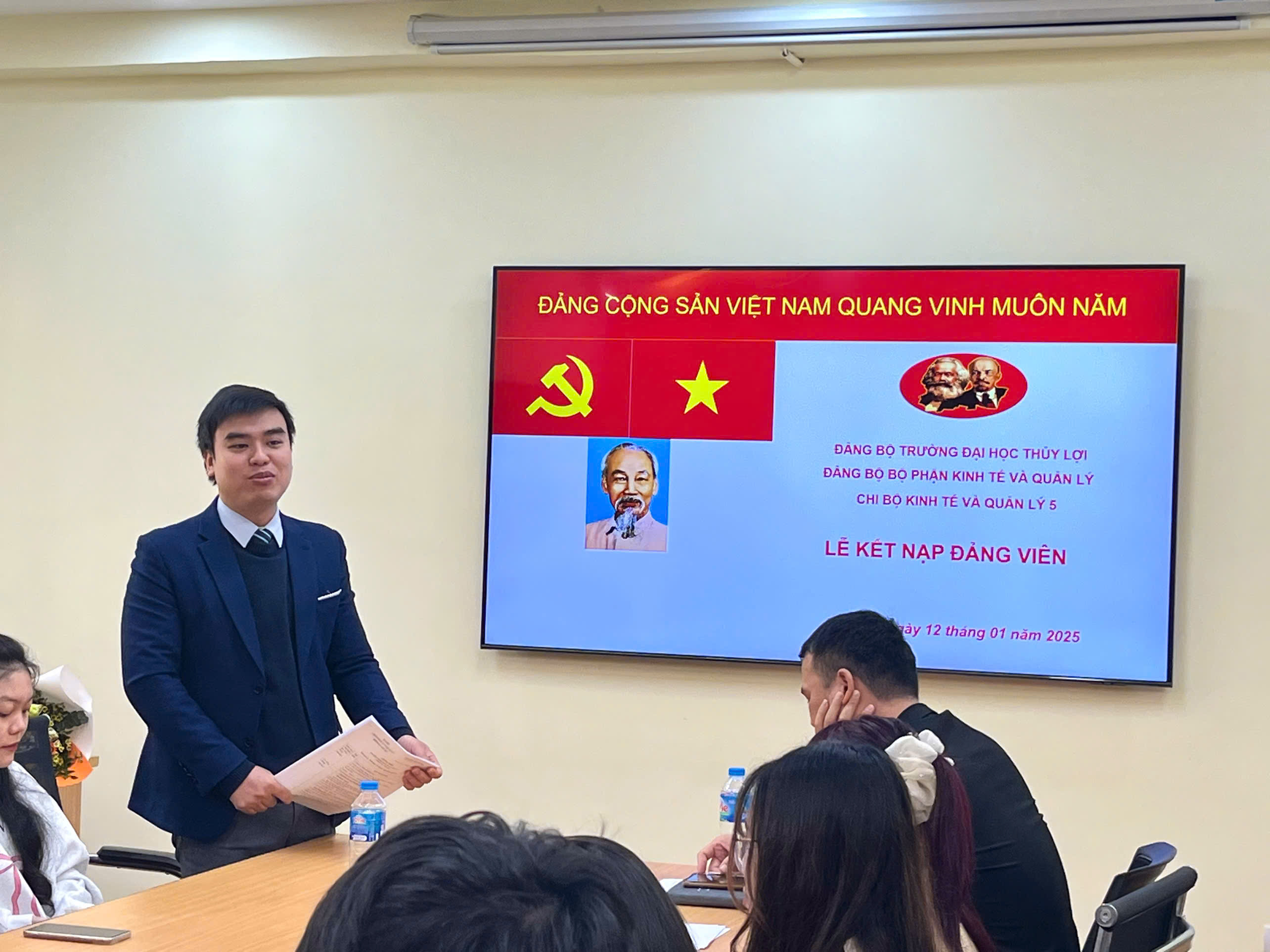 Ngày 12/01/2025, Chi bộ Kinh tế và Quản lý 5 đã long trọng tổ chức Lễ kết nạp Đảng viên cho quần chúng ưu tú Vũ Ngọc Thư – Giảng viên Bộ môn Quản trị Du lịch, đánh dấu một bước tiến quan trọng trong công tác phát triển Đảng tại Chi bộ.