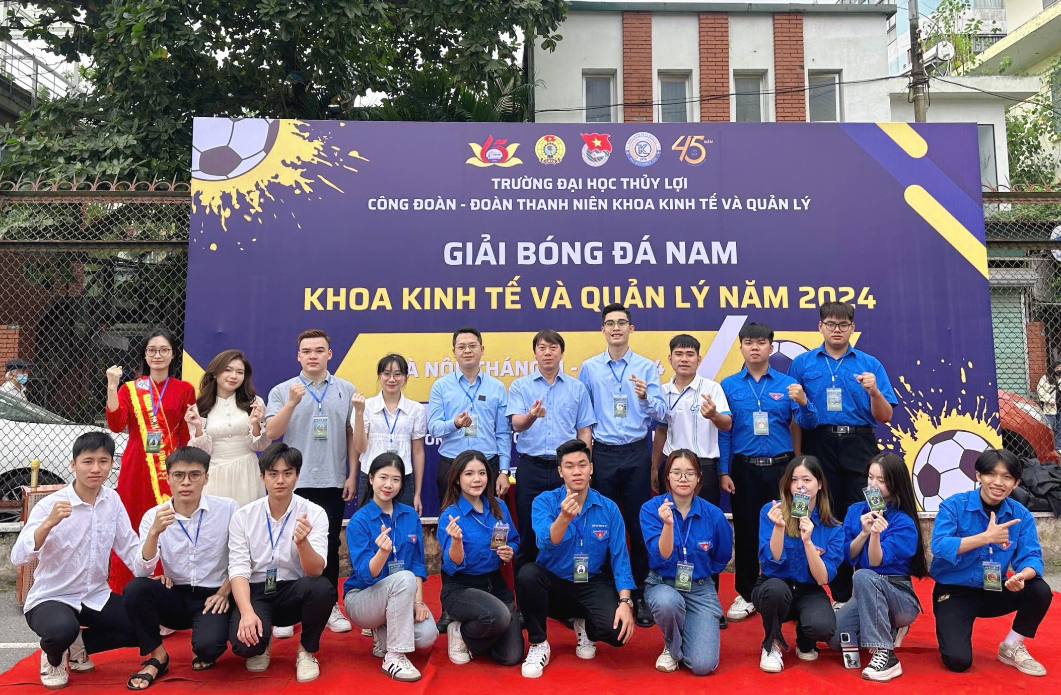 Sáng ngày 23/11/2024, tại sân bóng Trường Đại học Thủy lợi, giải bóng đá nam đầu tiên của Khoa Kinh tế và Quản lý đã chính thức khởi động, đánh dấu một cột mốc quan trọng trong phong trào thể thao của khoa. Với không khí trang trọng, sôi nổi và đầy phấn khích, lễ khai mạc không chỉ mở ra một sân chơi đỉnh cao mà còn thể hiện tinh thần thể thao mạnh mẽ và ý chí quyết tâm của các đội bóng.