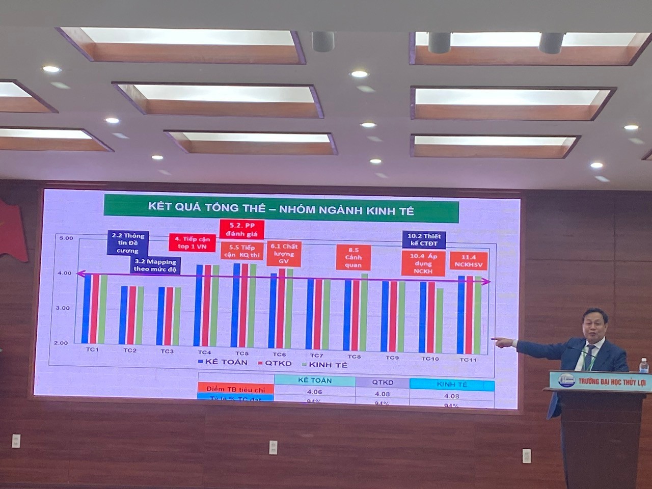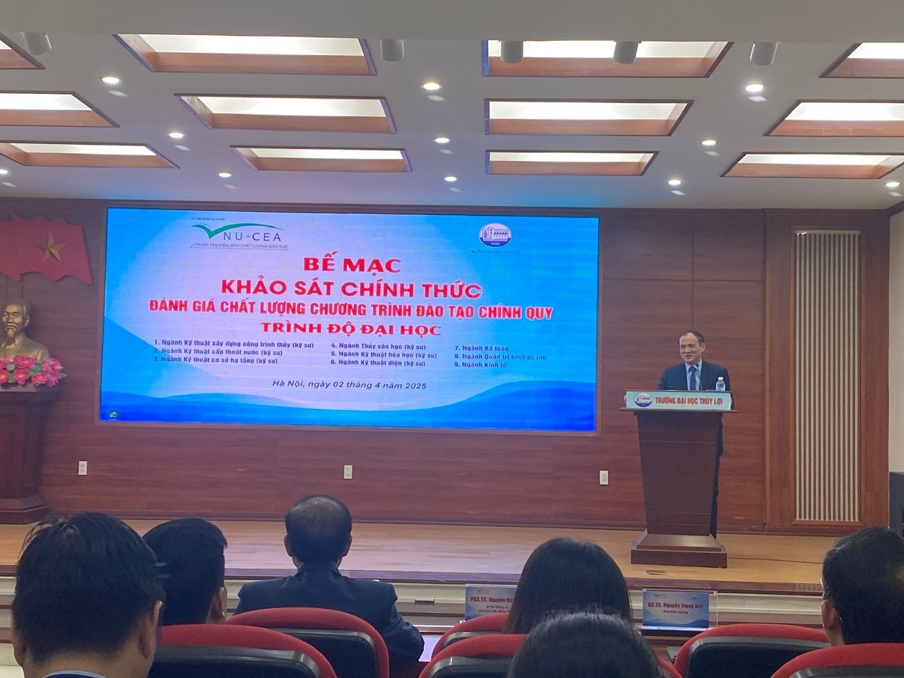 Hôm nay ngày 2/4/2025, Đoàn đánh giá ngoài thuộc Trung tâm Kiểm định Chất lượng giáo dục thuộc Đại học Quốc gia Hà Nội đã công bố kết quả đánh giá đối với 9 chương trình đào tạo của Trường Đại học Thủy lợi giai đoạn 2020-2024. Tất cả 9 chương trình đào tạo đều đã đạt Tiêu chuẩn kiểm định chất lượng giáo dục. Tuy nhiên, điểm nhấn trong đợt đánh giá này đó là các ngành: Kinh tế, Quản trị kinh doanh và Kỹ thuật công trình thuỷ đã đạt MỨC ĐIỂM CAO NHẤT trong tổng số 9 ngành đào tạo được kiểm định đợt này.
