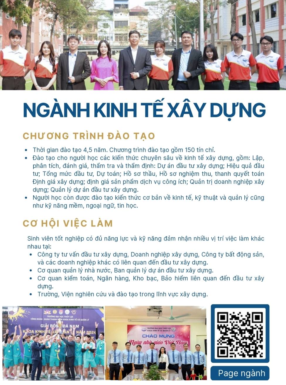 Tại ngày hội, gian tư vấn của ngành Kinh tế xây dựng đã thu hút sự quan tâm của nhiều học sinh đến tìm hiểu về chương trình đào tạo, môi trường học tập cũng như cơ hội nghề nghiệp của ngành. Các giảng viên và sinh viên của Khoa Kinh tế và Quản lý đã trực tiếp giới thiệu và cung cấp thông tin về đặc điểm của ngành học, nội dung đào tạo cũng như những kỹ năng và kiến thức mà sinh viên sẽ được trang bị trong quá trình học tập tại Trường Đại học Thủy lợi.
