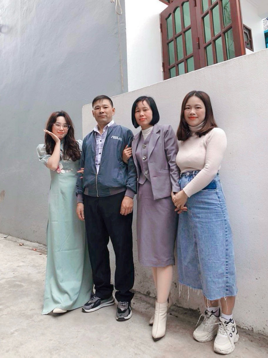 Bạn Hồng Dung (ngoài cùng bên trái) và gia đình