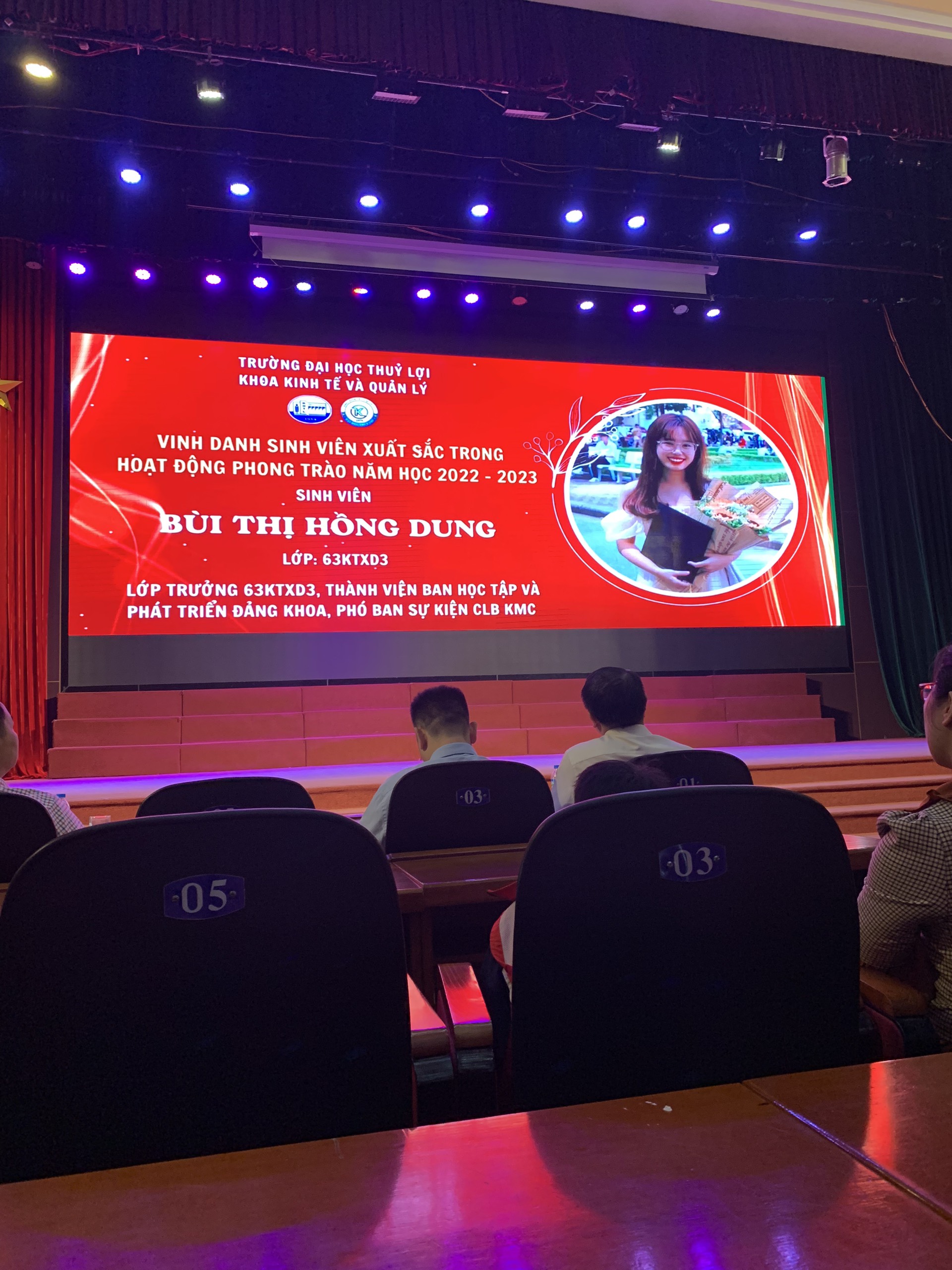 Bên cạnh đó với sự chăm chỉ, luôn phát huy tốt tinh thần tự học, làm theo lời Bác. Hồng Dung đã đạt được những thành tựu đáng ngưỡng mộ cũng như giấy khen đến từ Trường và Khoa như: