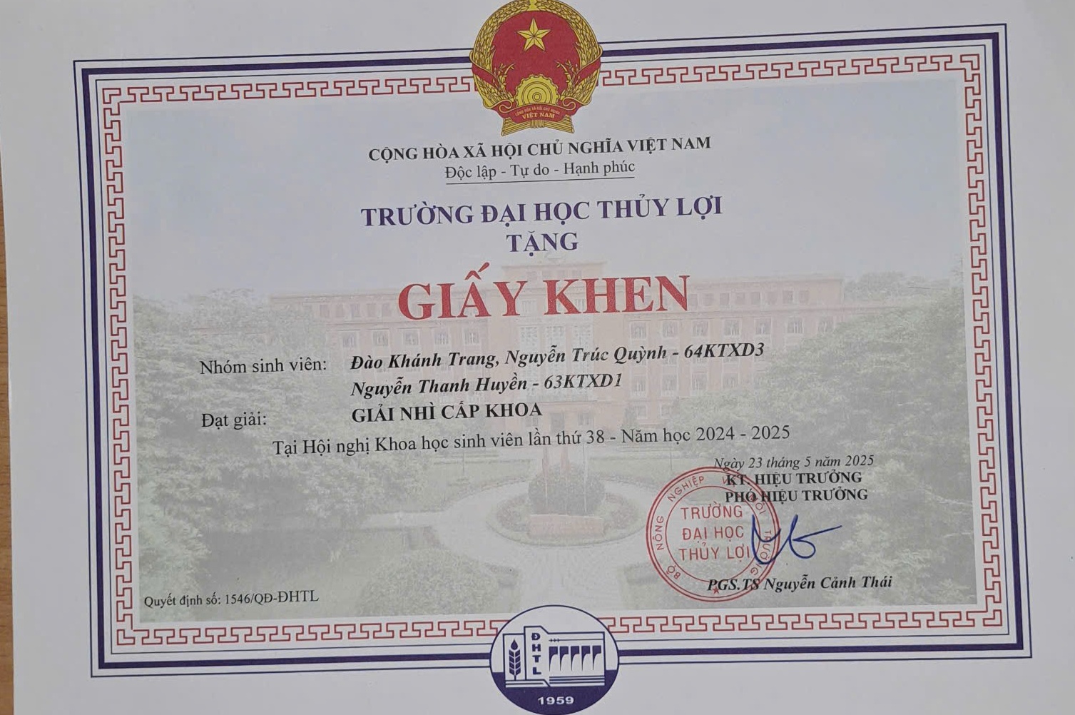 - Giải Nhì Nghiên cứu khoa học cấp Khoa năm học 2024 – 2025