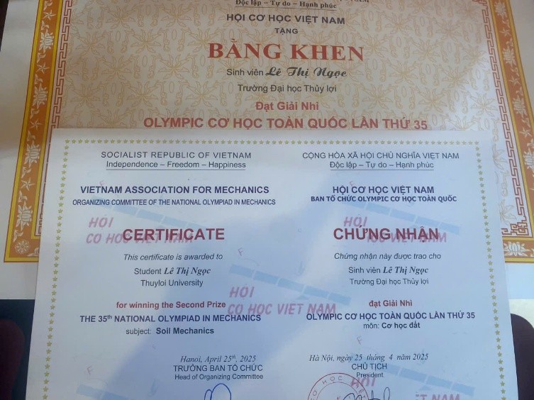 - Giải nhì Olympic Cơ học toàn quốc lần thứ 35 năm 2025 - môn Cơ học Đất